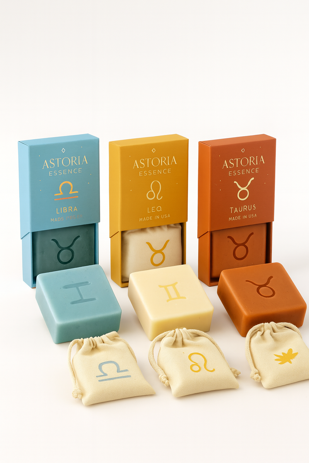 "Each Astoria Essence bar is handcrafted to align with your zodiac’s unique energy — bringing balance, grounding, and radiance to your daily ritual."