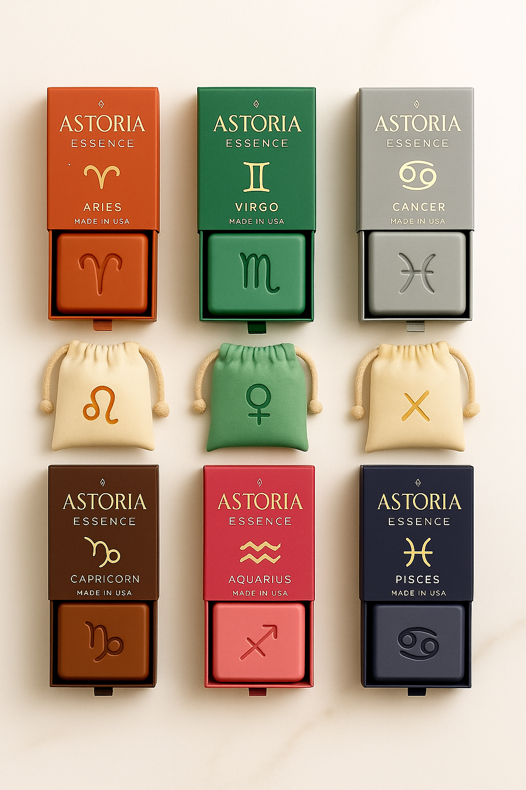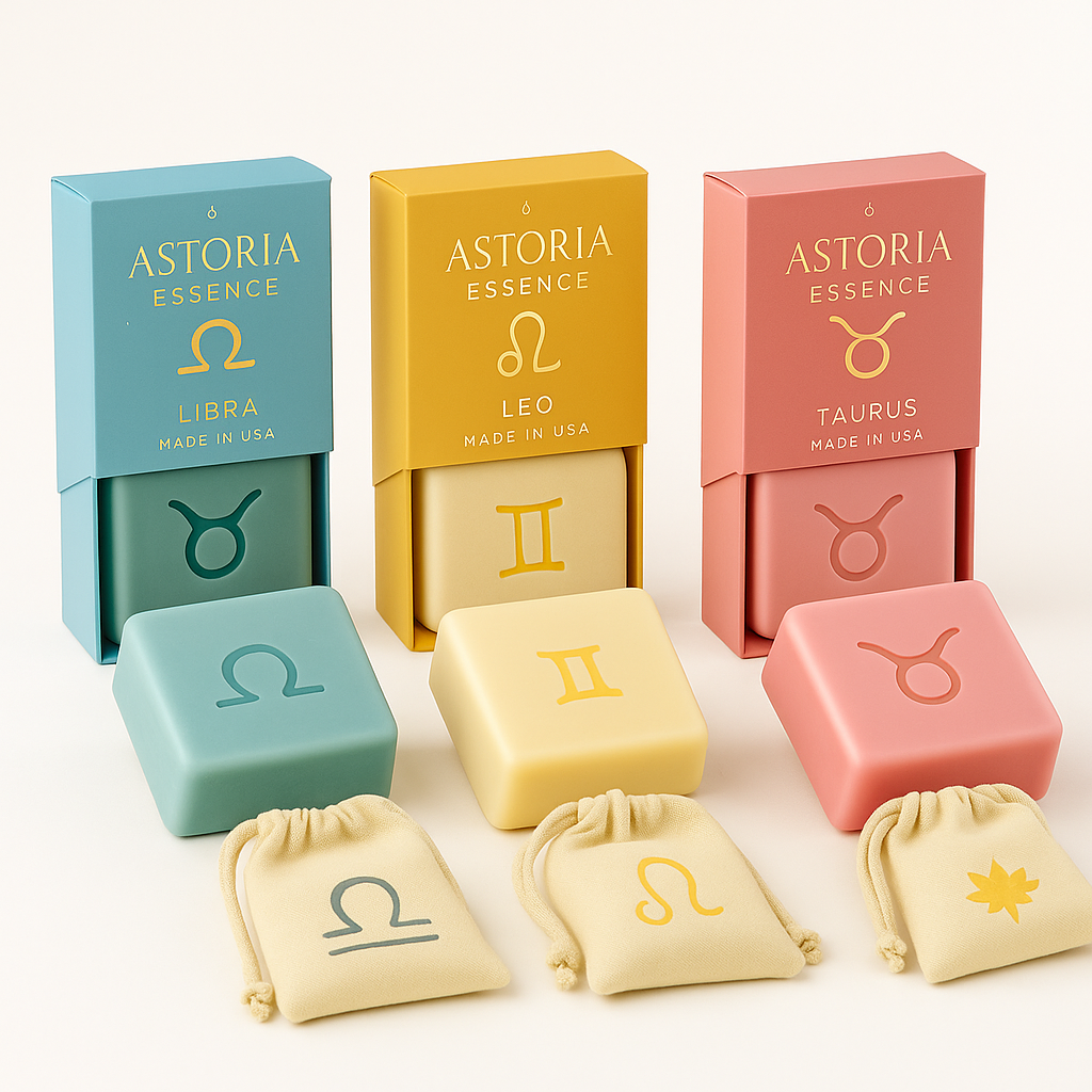 "Each Astoria Essence bar is handcrafted to align with your zodiac’s unique energy — bringing balance, grounding, and radiance to your daily ritual."